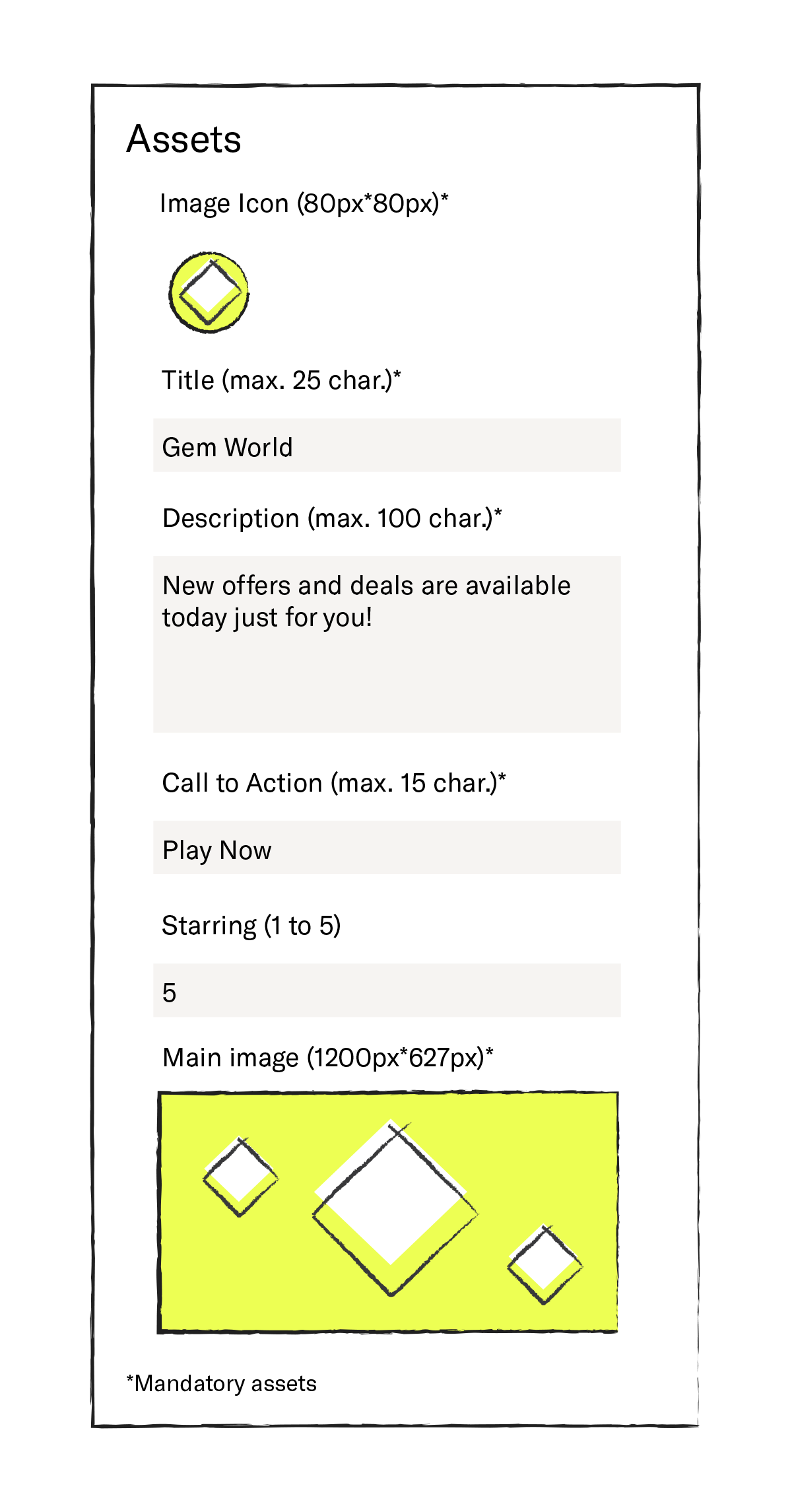 - Title - Ad headline (up to 12 characters).